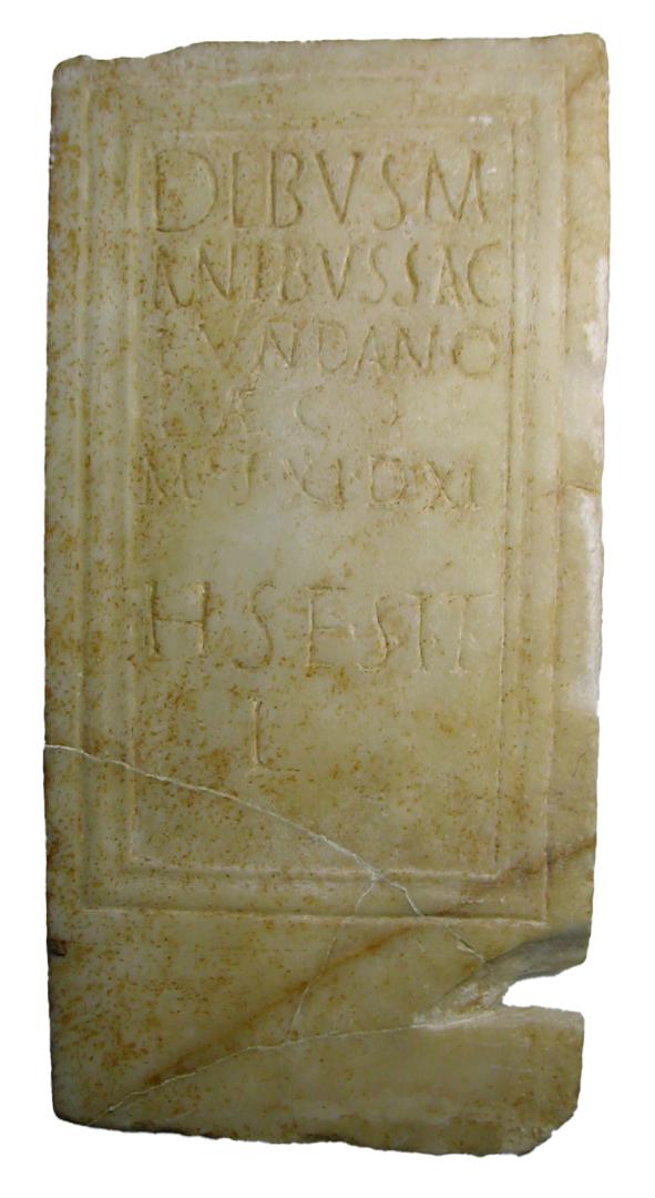 PLACA EPIGRÁFICA CON INSCRIPCIÓN ALFABÉTICA (ABECEDARIO LATINO) Ampliar imagen Ver ficha ARA FUNERARIA INFANTIL CON INSCRIPCIÓN Ampliar imagen Ver ficha PLACA CON DOBLE INSCRIPCIÓN FUNERARIA Ampliar imagen Ver ficha FRAGMENTO SUPERIOR DE LUCERNA ANTROPOMORFA CON REPRESENTACIÓN DE UN GLADIADOR (TIPO SECUTOR) Ampliar imagen Ver ficha LUCERNA CON FORMA DE CABEZA Ampliar imagen Ver ficha LUCERNA CON GLADIADOR EN EL DISCO Ampliar imagen Ver ficha LUCERNA CON MOTIVO ERÓTICO EN EL DISCO Ampliar imagen Ver ficha LUCERNA CON MOTIVO ERÓTICO EN EL DISCO Ampliar imagen Ver ficha FRAGMENTO DE MONUMENTO FUNERARIO CON RETRATO Ampliar imagen Ver ficha ARA FUNERARIA INFANTIL CON INSCRIPCIÓN Ampliar imagen Ver ficha PLACA CON INSCRIPCIÓN FUNERARIA Ampliar imagen Ver ficha PLACA CON INSCRIPCIÓN FUNERARIA DE UN MÉDICO-ESCLAVO Ampliar imagen Ver ficha PLACA CON INSCRIPCIÓN FUNERARIA Ampliar imagen Ver ficha PLACA CON INSCRIPCIÓN FUNERARIA DE UN LEGIONARIO Ampliar imagen Ver ficha RETRATO DE UN HOMBRE ADULTO Ampliar imagen Ver ficha RETRATO INFANTIL Ampliar imagen Ver ficha PLACAS DE PLOMO INSCRITAS Ampliar imagen Ver ficha Ampliar imagen Ver ficha Ampliar imagen Ver ficha Ampliar imagen Ver ficha Ampliar imagen Ver ficha Ampliar imagen Ver ficha Ampliar imagen Ver ficha Ampliar imagen Ver ficha Ampliar imagen Ver ficha Ampliar imagen Ver ficha