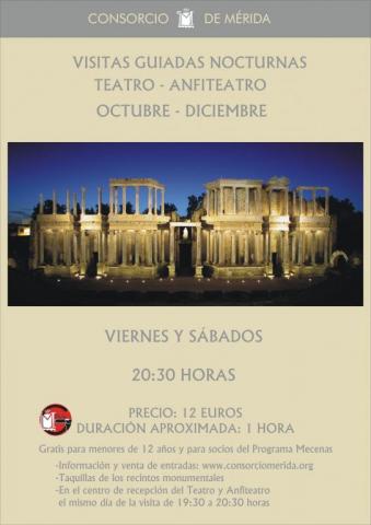 Información y venta de entradas en el acceso principal del Recinto del Teatro y Anfiteatro romanos, el mismo día de la visita, de 19:30 a 20:30 h o en www.consorciomerida.org